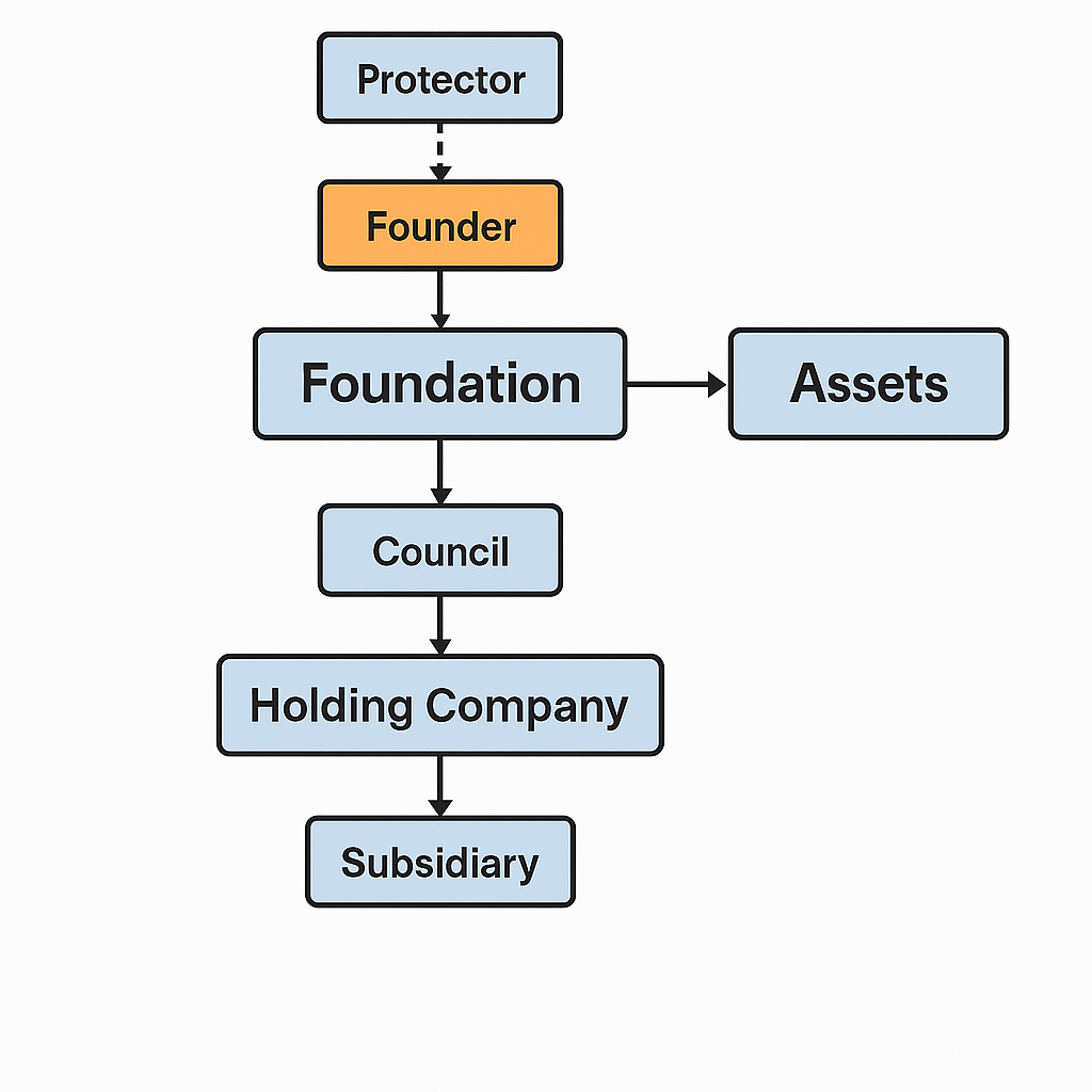 Founder → Nevis Foundation → BVI/HK控股公司 → Operating Co/Asset此结构可: